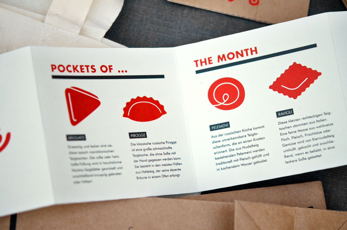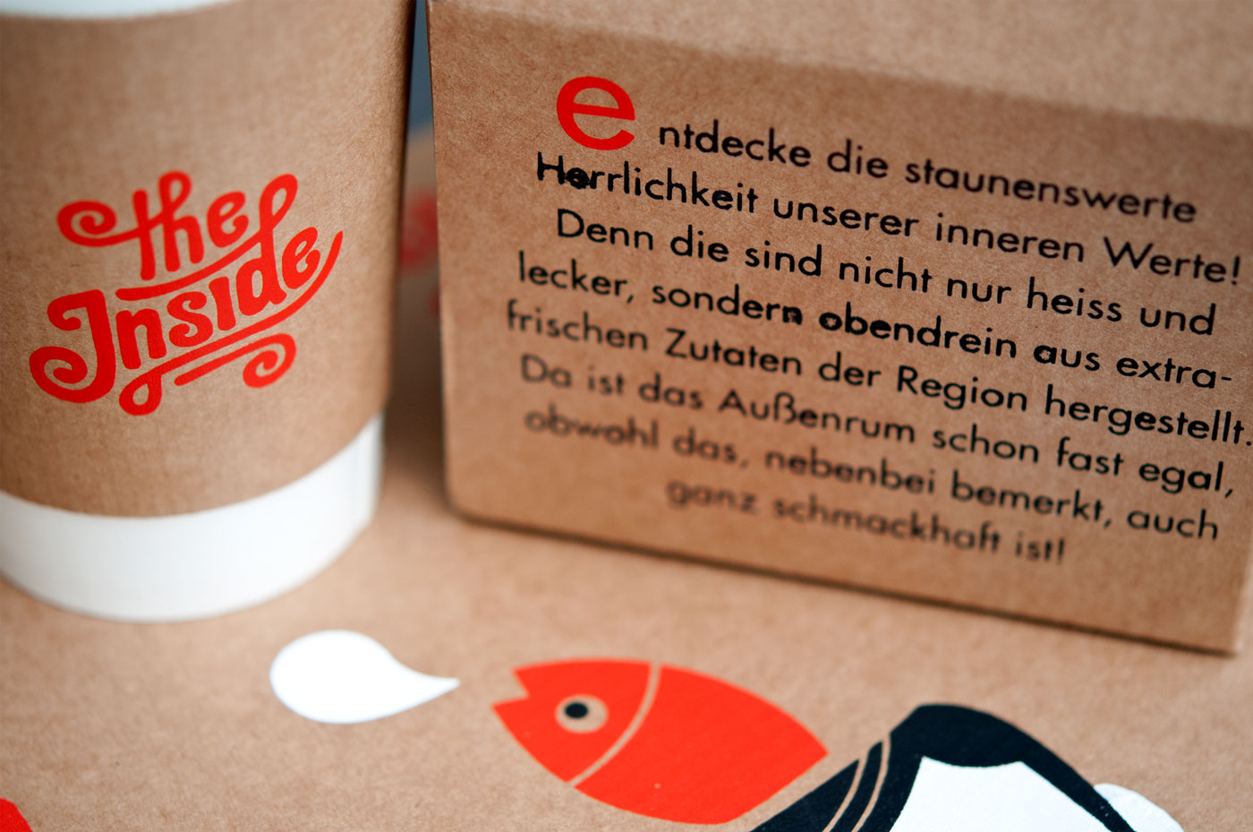 An essential common feature of these dumplings are their super hot and at the same time natural inner values, which not only were the inspiration for the restaurant name, but also find their place in the graphical implementation: The simple and reduced illustrations play with the themes “inside” and “inner values” and, in particular, with the slogan “hot, tasty and organic inner values”. The aim was to give the customer space for personal interpretation and attract his attention in a humorous way, making him afterwards smile.